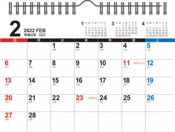 大きめ文字で壁掛けカレンダーとしても使用でき、メモスペースも広くご利用可能です。