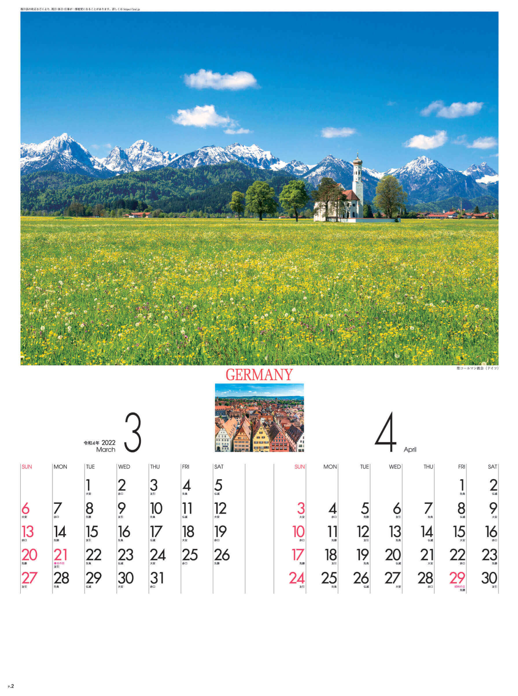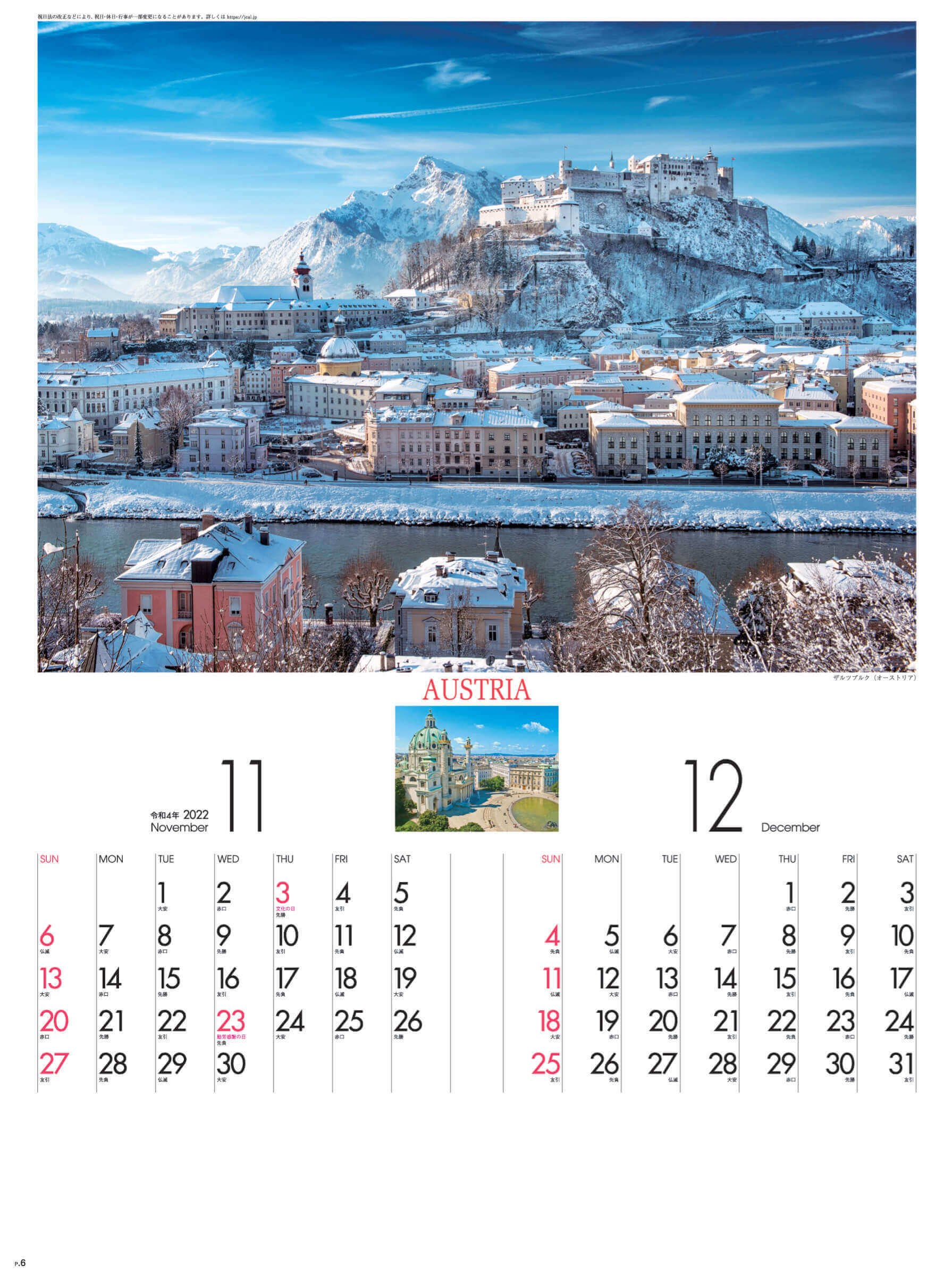 個人でのご注文はこちら SG-209 ヨーロッパの旅 2022年カレンダー