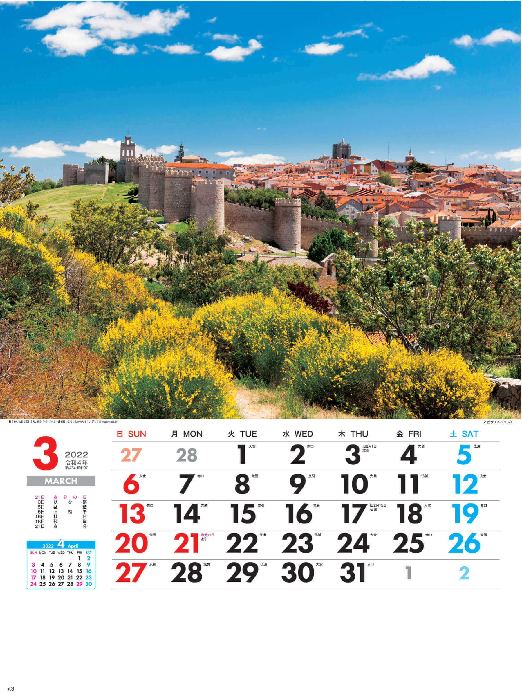 個人でのご注文はこちら SG-262 外国風景 2022年カレンダー