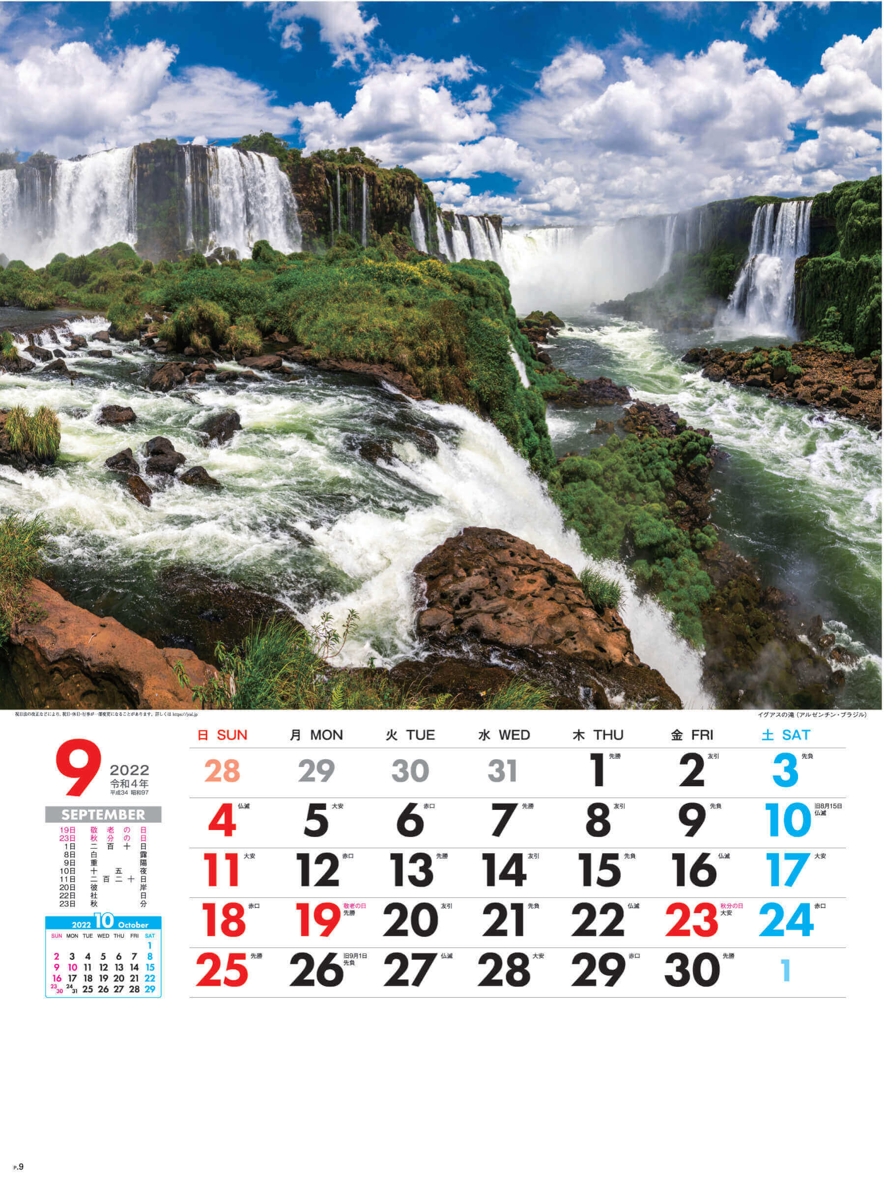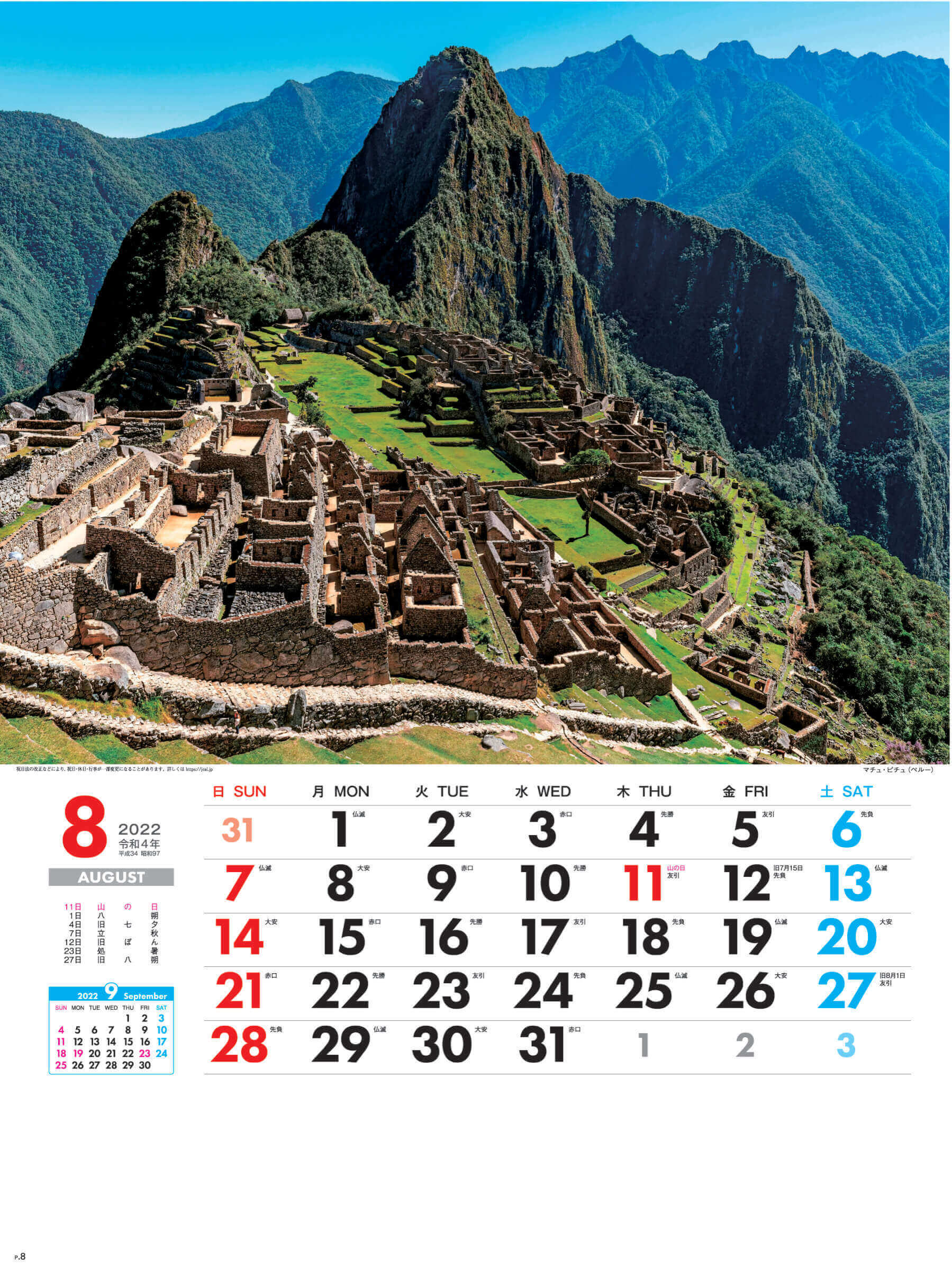 ペルーのマチュ・ピチュや南米のイグアスの滝など世界の名勝を自室で堪能できるカレンダーです。