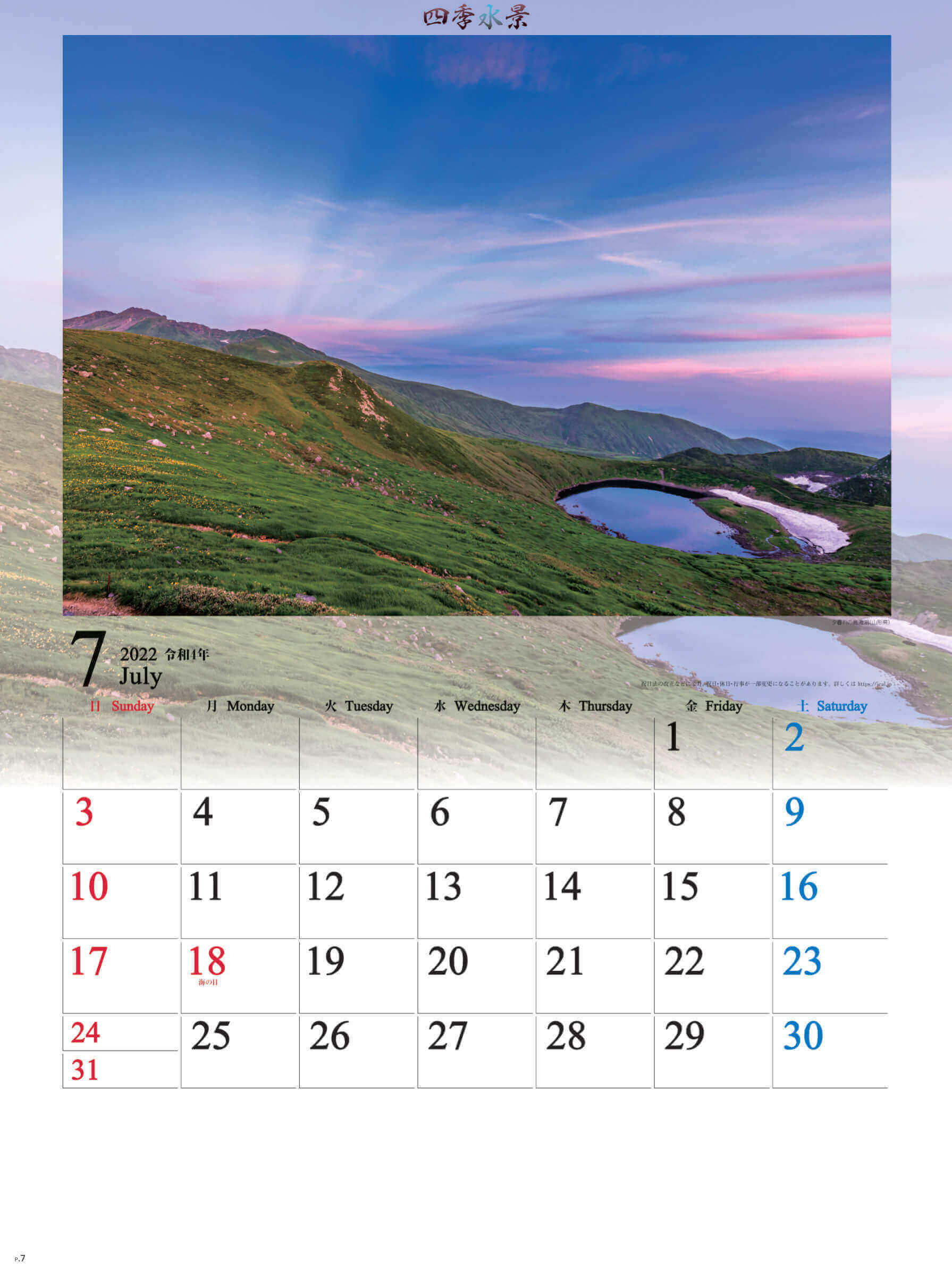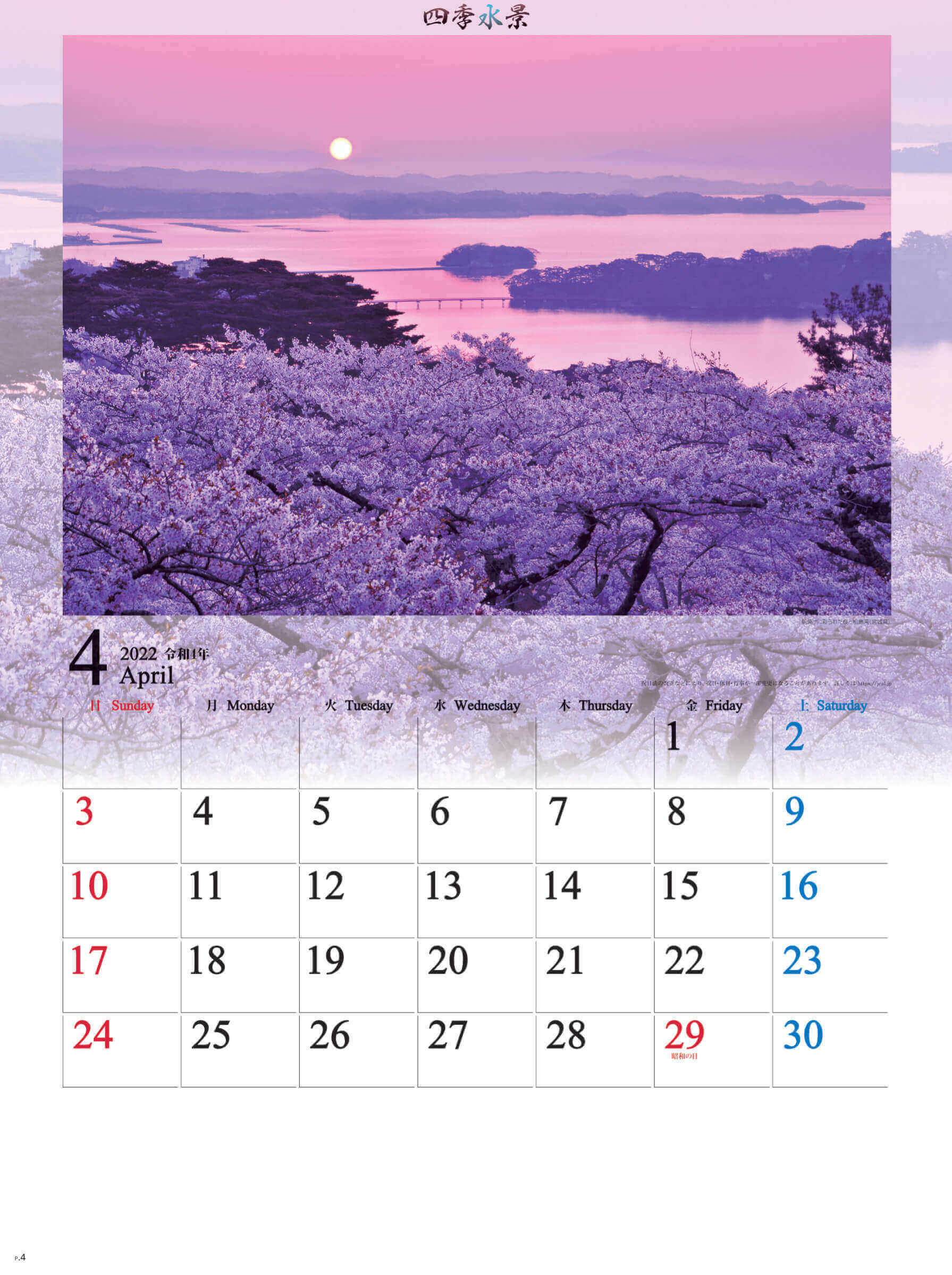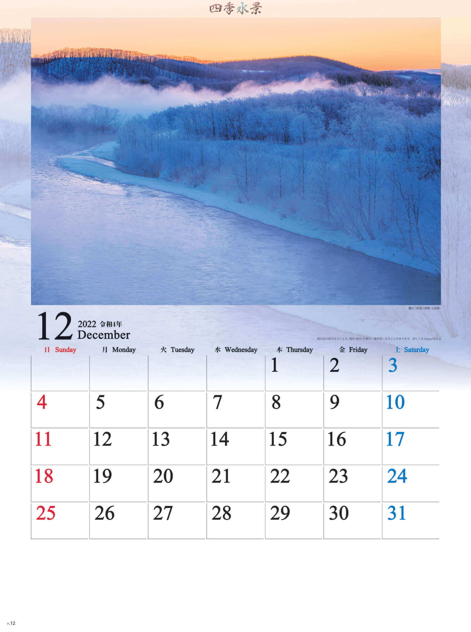 個人でのご注文はこちら SG-294 四季水景 2022年カレンダー