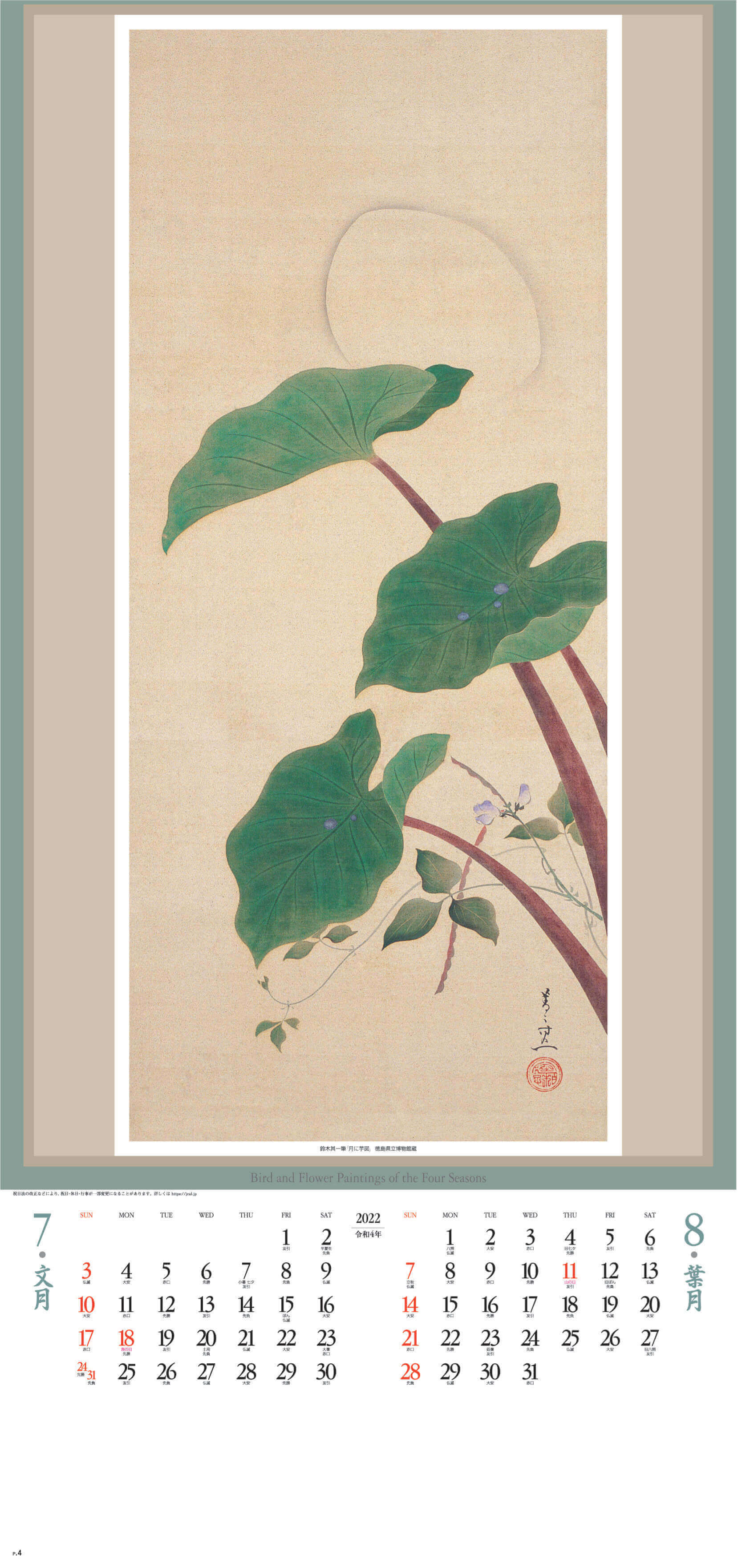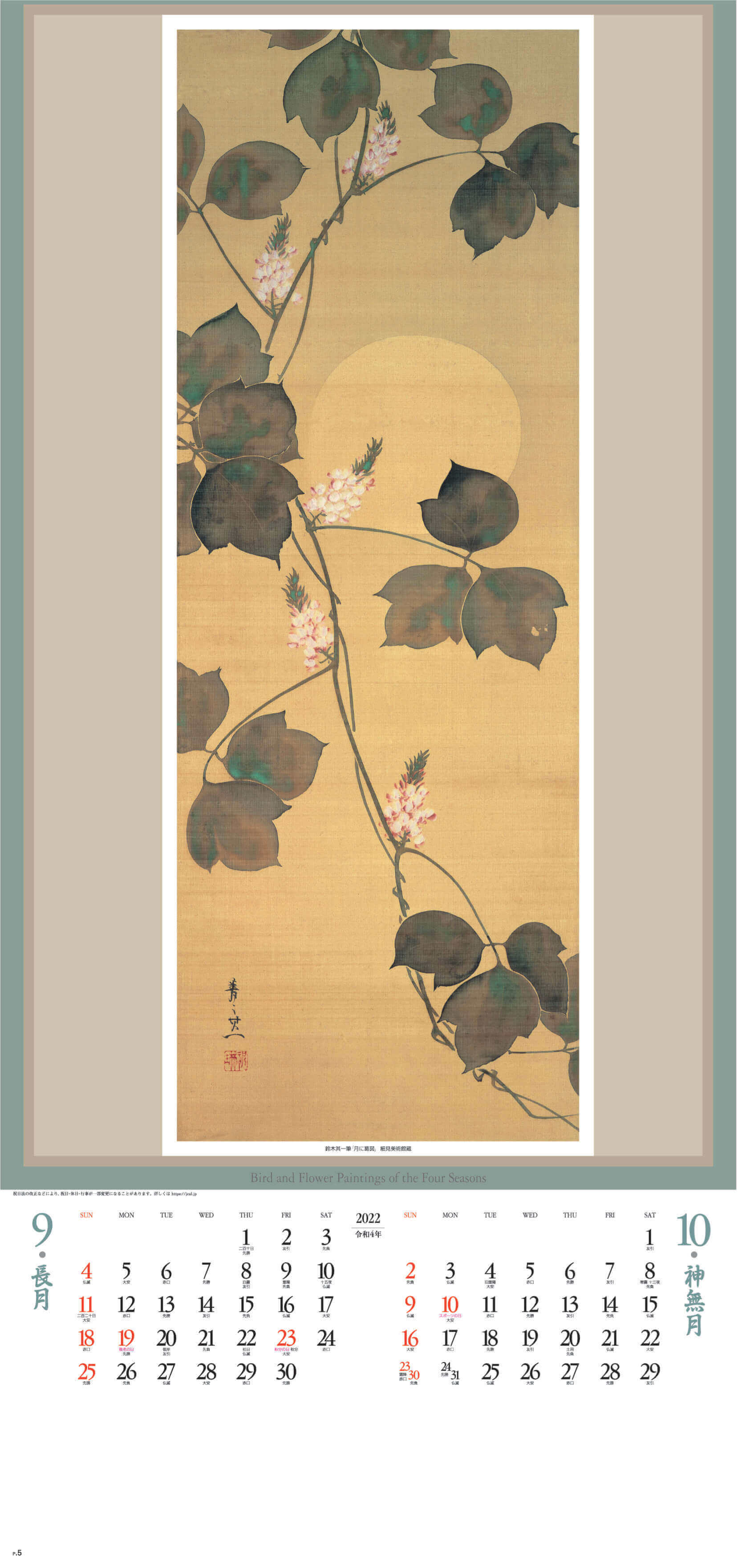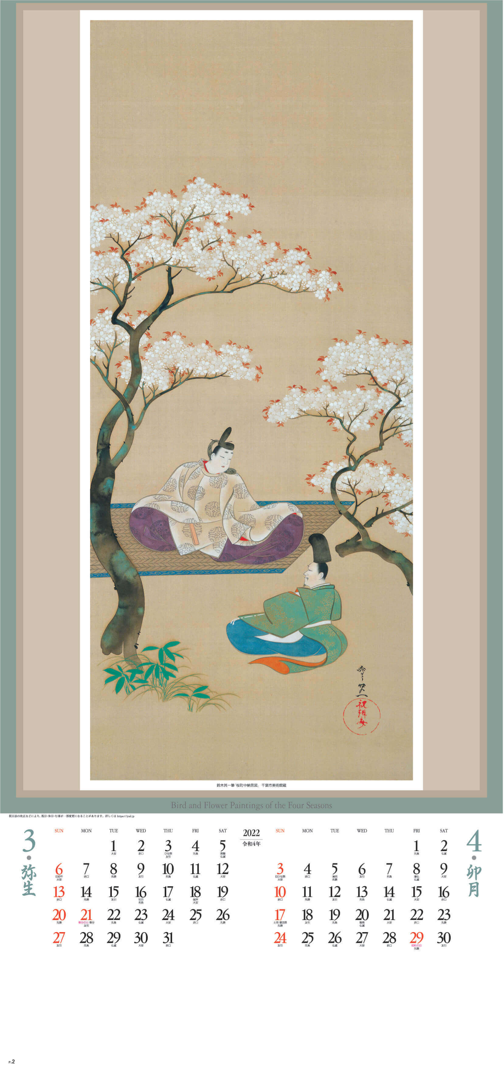 和室にマッチする花鳥画の名品を厳選しました。通常のカレンダーと違い紐付きなので、床の間に飾るのがオススメです。岸駒、鈴木其一、酒井方一の作品をご堪能下さい。
