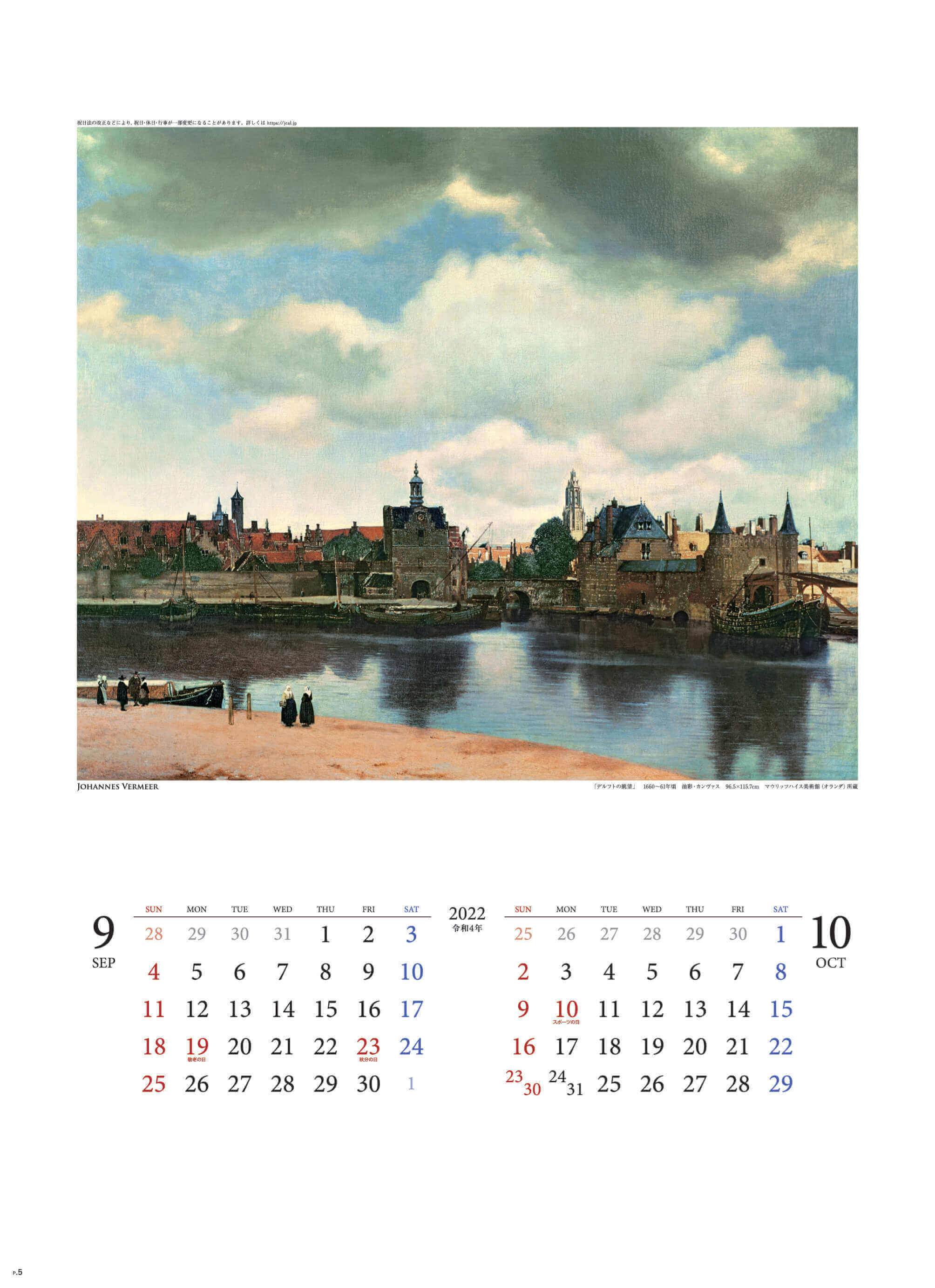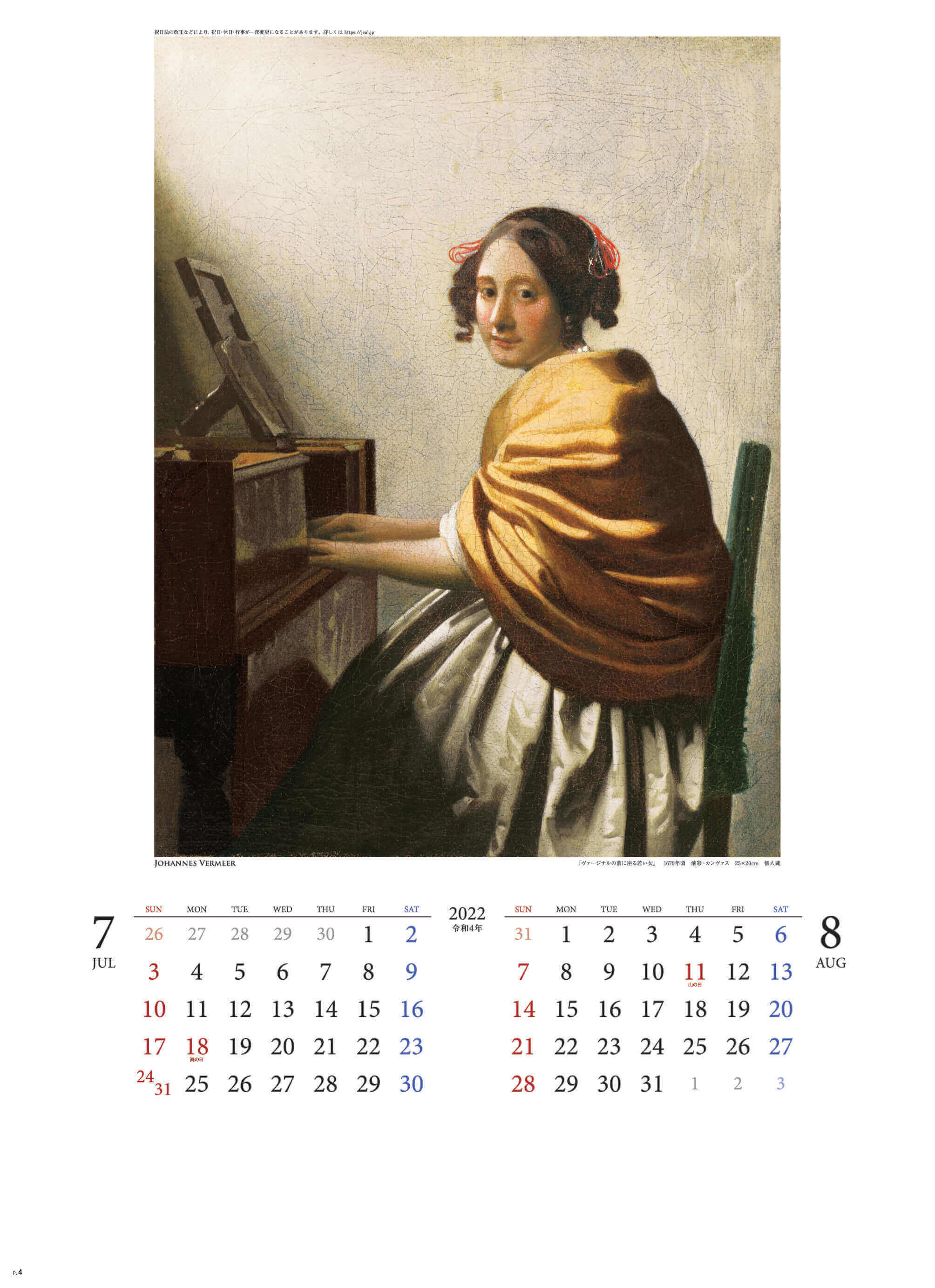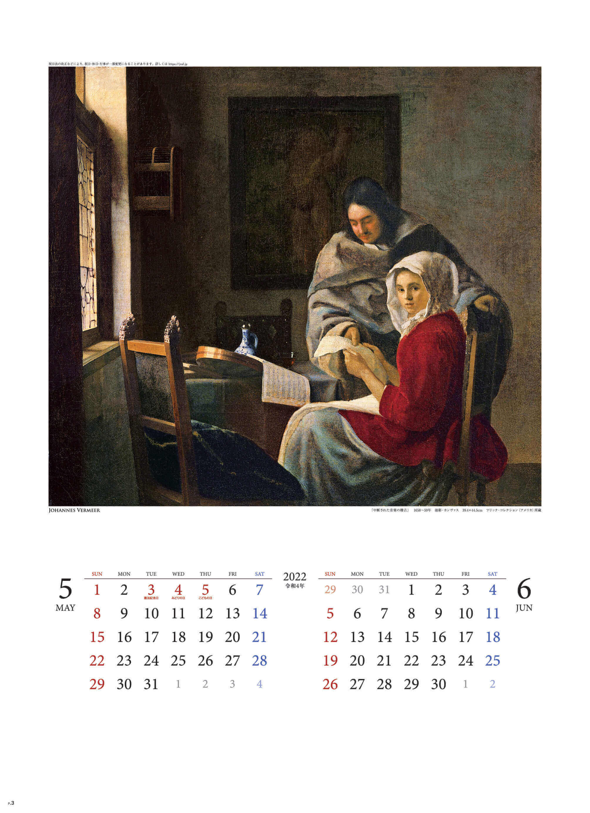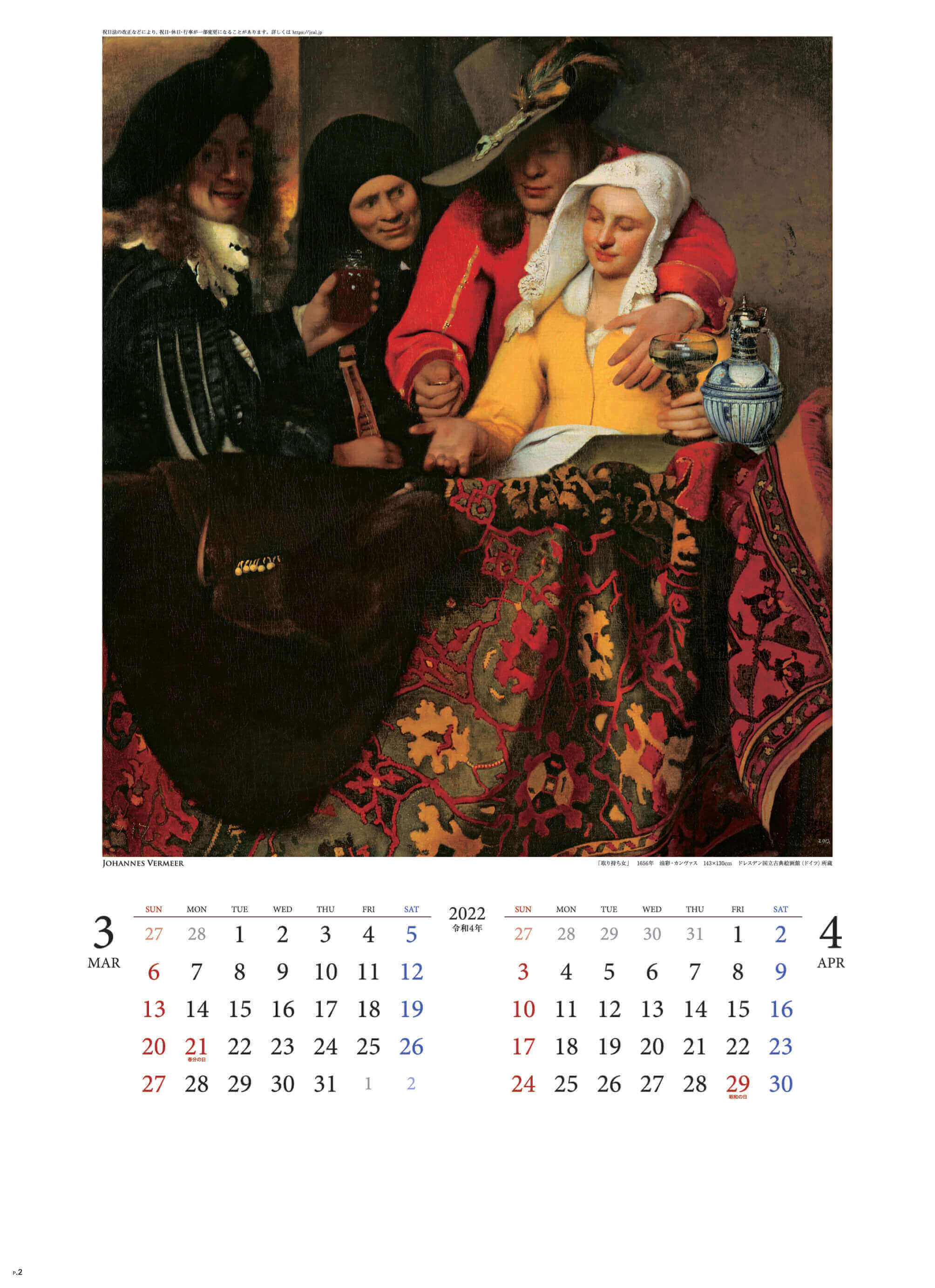 【カレンダーの掲載されているフェルメール作品について】