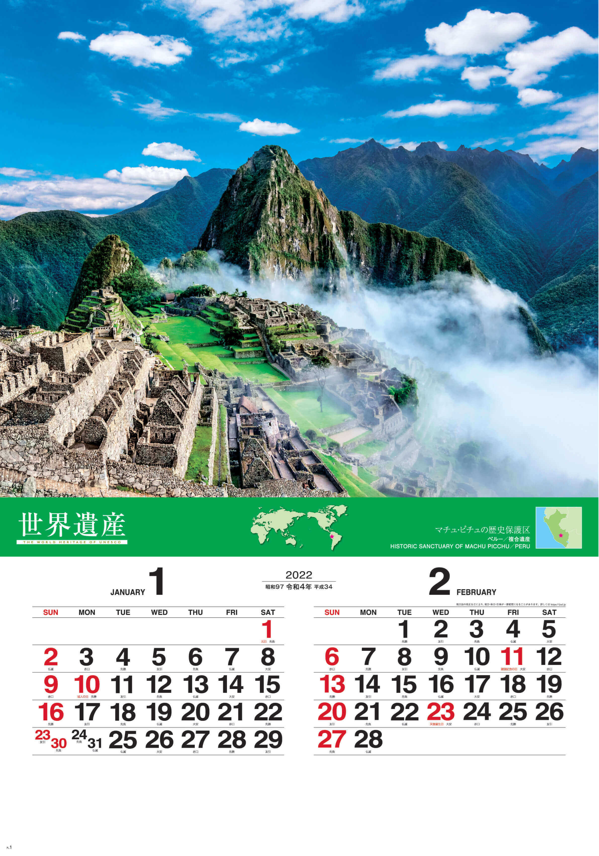 個人でのご注文はこちら SG-507 ユネスコ世界遺産(フィルムカレンダー) 2022年カレンダー