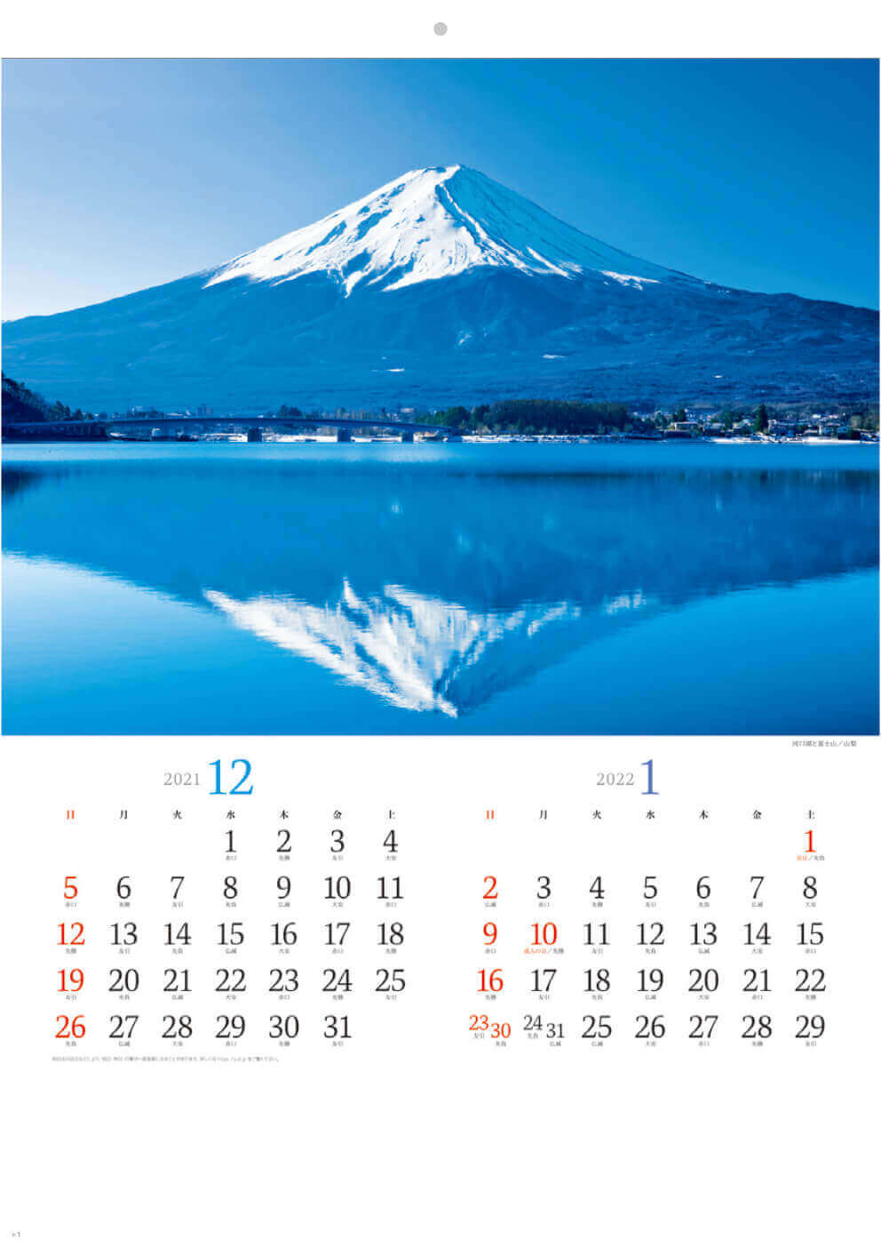 前年の12月から始まるので、年末年始やゴー ルデンウイークの予定がひと目でわかります。彩り豊かな日本の四季をテーマにしたカレンダー。