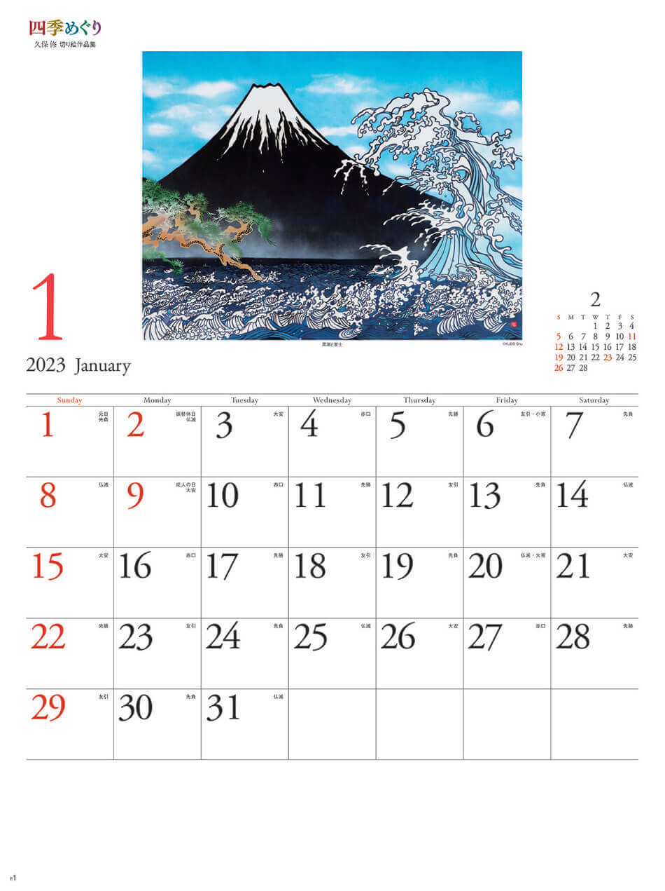 個人でのご注文はこちら NK-54 四季めぐり・久保修切り絵作品集 2023年カレンダー