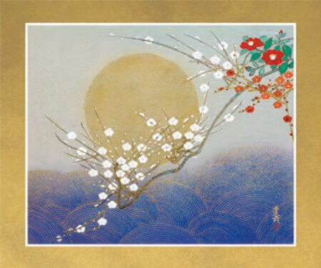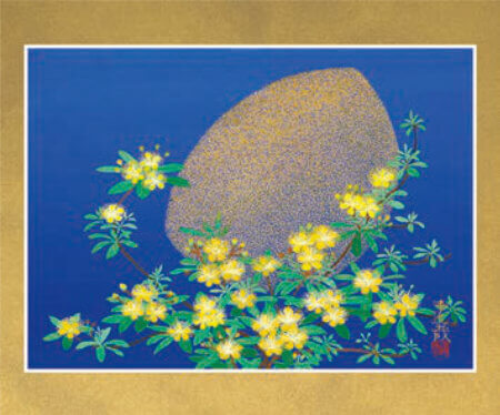 石踊達哉 プロフィール 1945年旧満州(現中国東北部)に生まれる。1970年東京藝術大学大学院を終了。1998年、瀬戸内寂聴現代語訳「源氏物語」五十四帖の装幀画を担当。2007年金閣寺万丈杉戸絵・客殿格天井画を制作。パリ、ニースなど国内外で古典を多数開催。伝統的な花鳥風月を現代感覚で典雅な作品に昇華させる作風で高い評価を得ている。